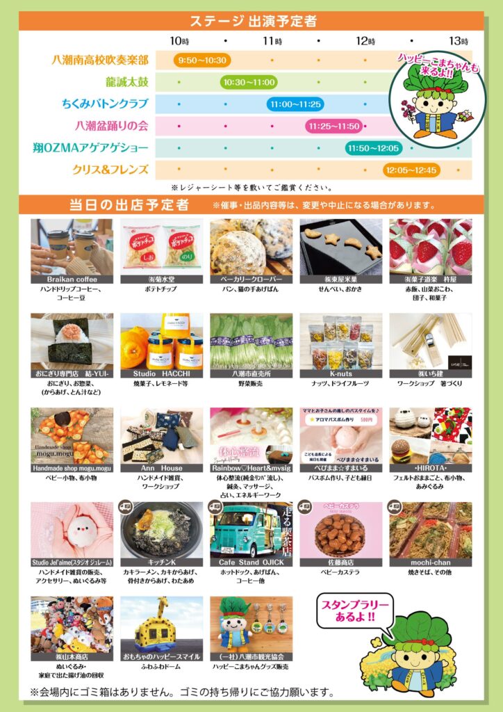 朝のさわやかな空気の中、地元グルメやステージイベントを楽しめる3時間です。