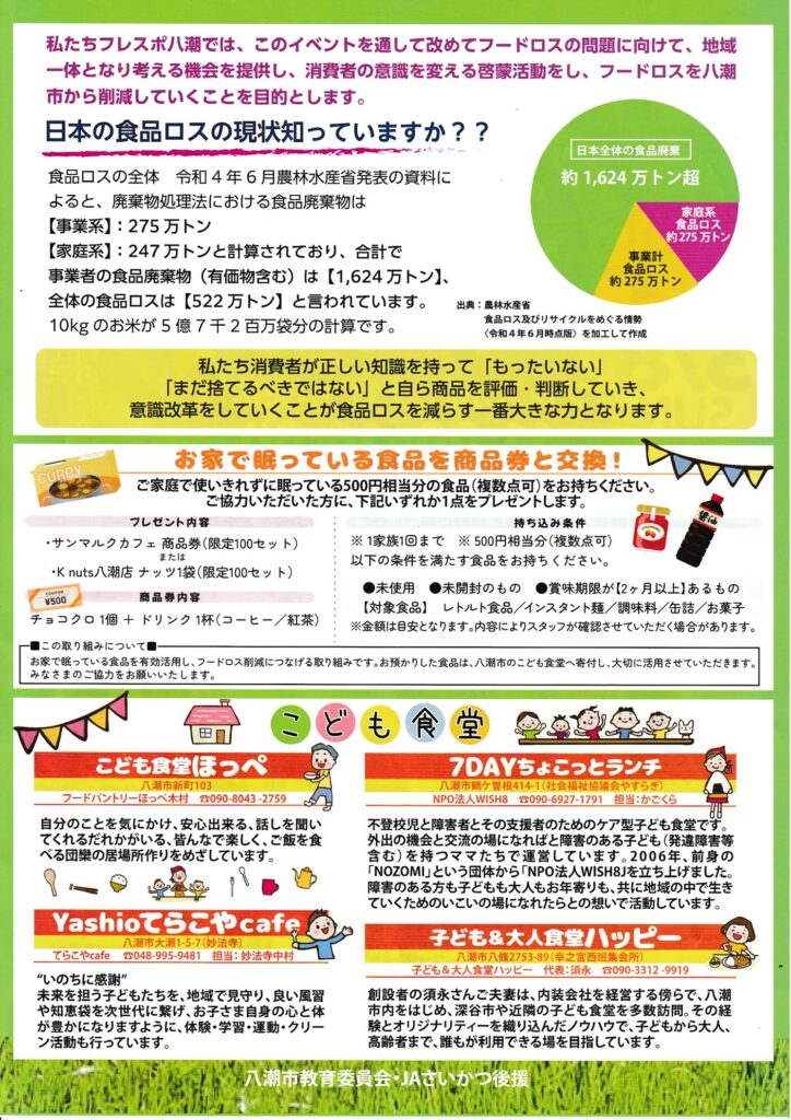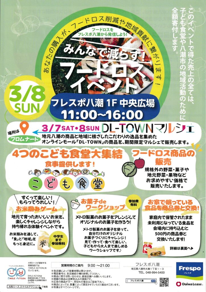 3月8日(日)、フレスポ八潮1階中央広場で「みんなで減らそう!フードロスイベント」が開催されます。