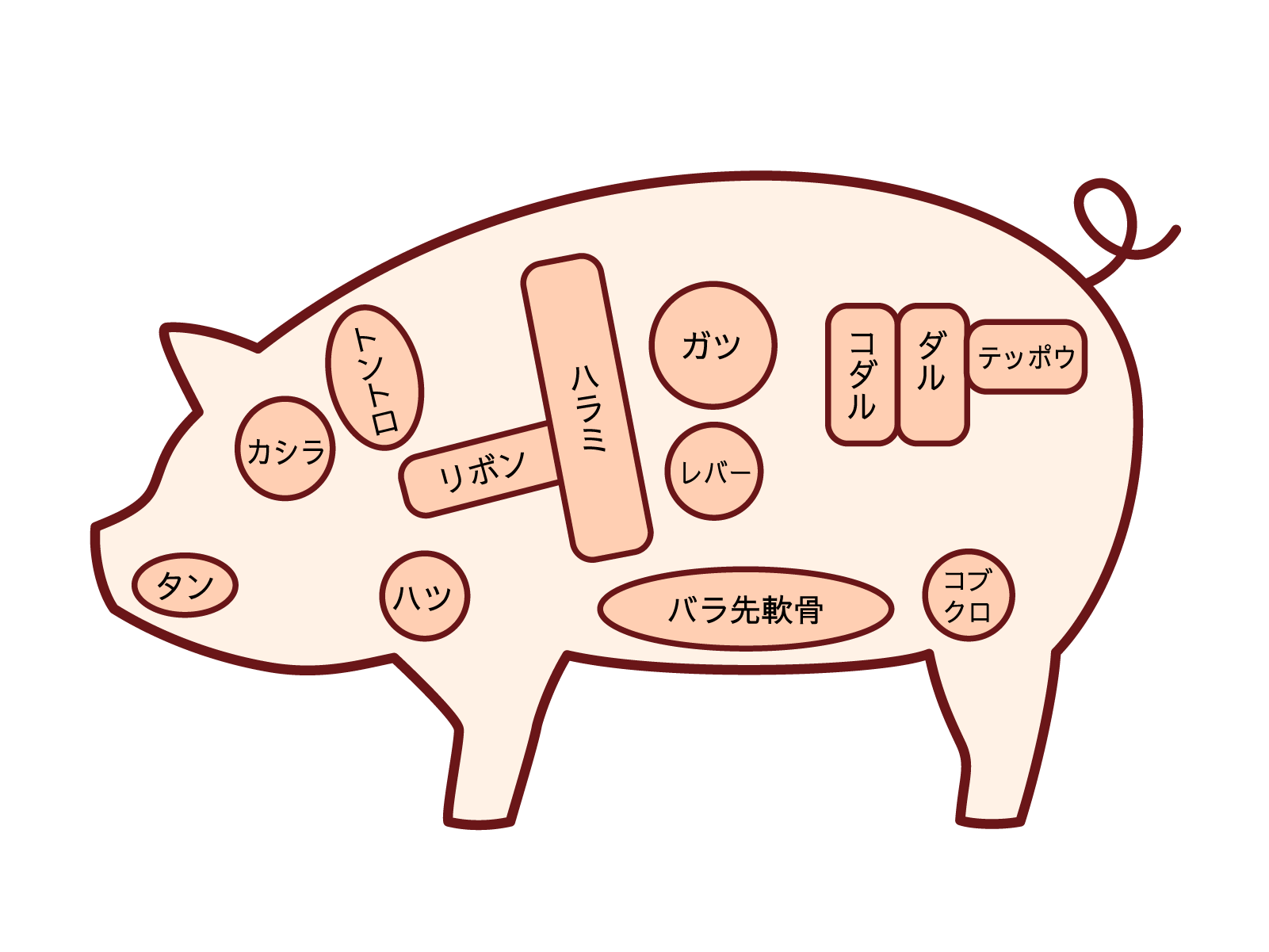 ホルモン好きな方はご存じかもしれませんね。「テッポウ」というのは牛や豚の腸の一種、直腸を指します。名前の由来は、お肉を開いた形が「鉄砲」に似ていることから。豚のテッポウは「あぶら」や「チューブ」といった呼び方もあるそうです。テッポウ肉は1頭からわずかしか取れないため、量も少なく、希少価値の高い部位となっています。