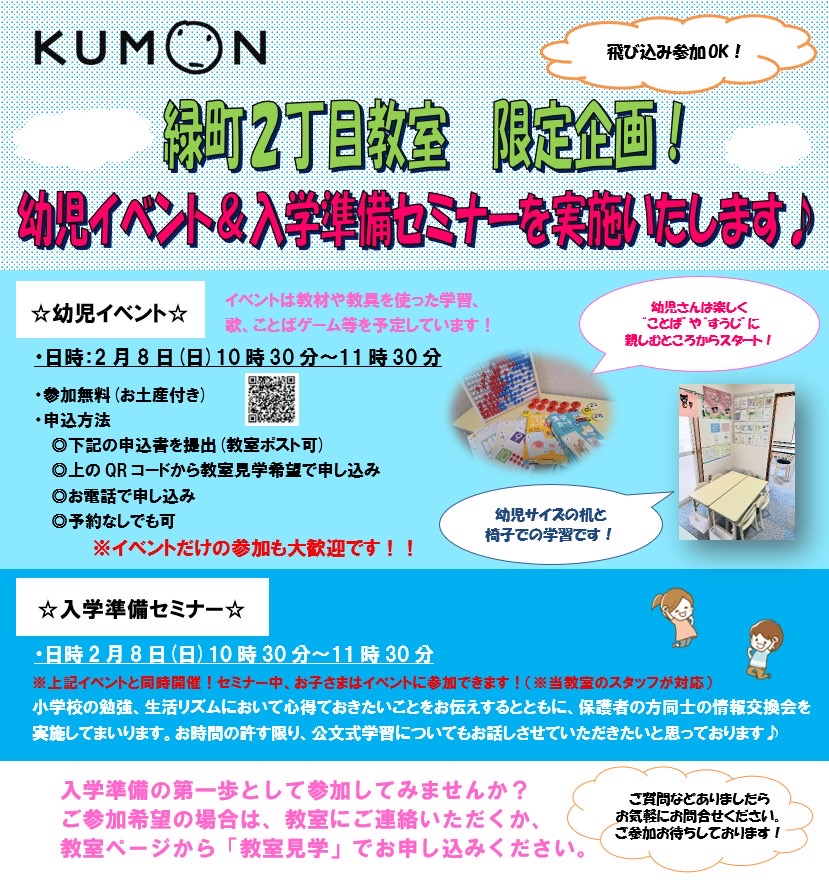 そんな未就学児の親子を対象に、公文式緑町2丁目教室で