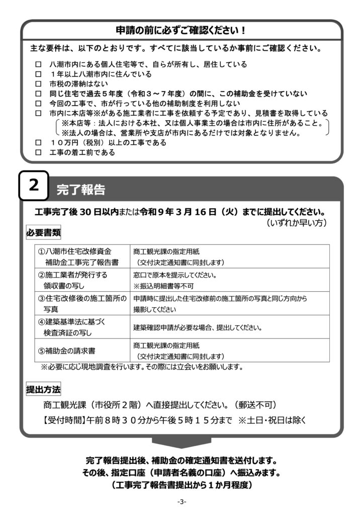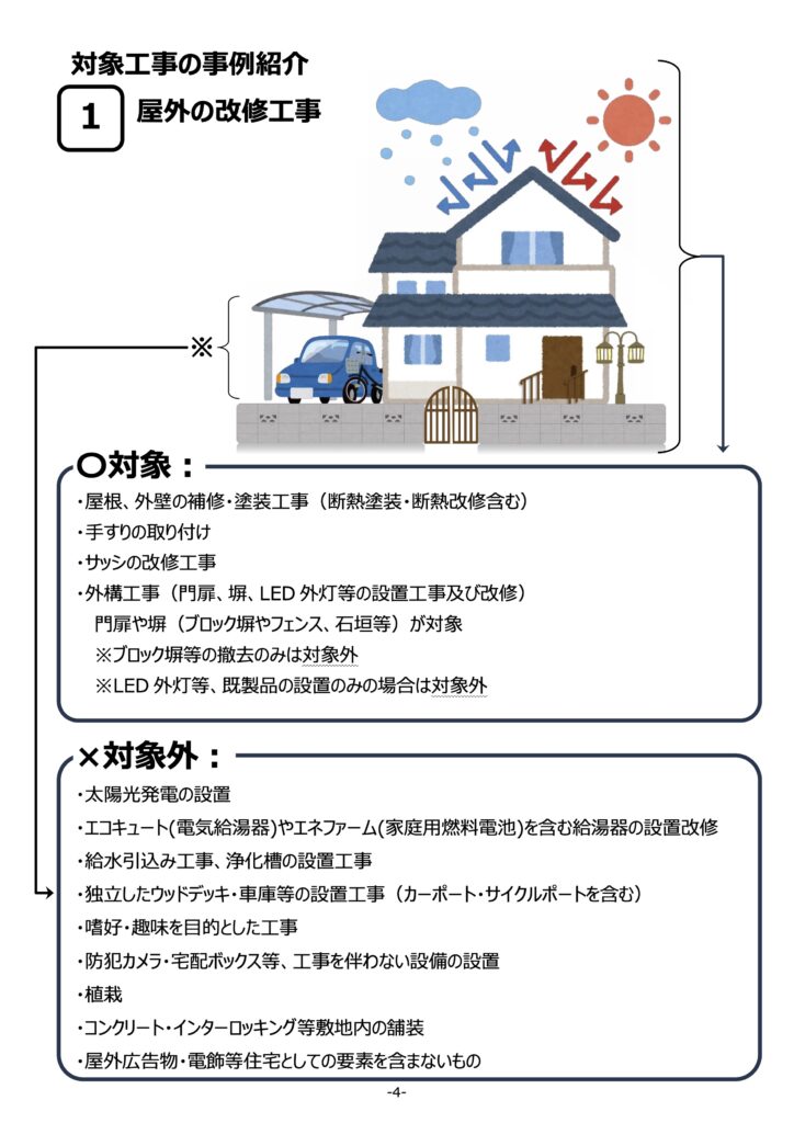 また、補助金の交付決定後に着工し、令和9年3月16日までに完了する工事が対象となります。